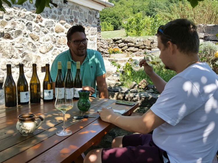 Gdy w sierpniu, podczas wspólnej wyprawy do Somló z Michałem z NieWinne Podróże, rozmawiamy z Tamásem, widzę jak jego miłość do wulkanu ewoluuje. Od rocznika 2018 zdecydował się na wyszczególnienie juhfarka z poszczególnych parceli – trzech małych tarasowych winnic na szczycie wzgórza. Efektem są trzy etykiety z szomlońskich crus i wydobycie możliwie czystej esencji z wulkanicznego siedliska. Bo Tamás mocno wierzy w juhfarka, endemiczną odmianę, uznając ją za prawdziwy szomloński diament. Z czym zresztą się z nim mocno zgadzam. Na moją zaczepkę, dlaczego nie zdecydował się na kontynuację eksperymentów z winami pomarańczowymi (jego Olaszrizling Narancs 2015 był przepyszny) odpowiada, że uznał, iż „maskowanie” metodami winifikacyjnymi szomlońskich odmian nie sprzyja wydobyciu ich autentyczności i czystego terroir. Z czym można się zgadzać lub nie. Nie sposób jednak nie zauważyć, że Kis trzyma jednak rękę na pulsie winiarskich trendów. Ostatnio na jego Facebooku wyskoczyła mi informacja, że spróbował swoich sił w pét-nacie. Pierwszy sparkler na Somló? Wydaje się, że tak. Żałuję tylko, że nie był gotowy już w sierpniu…