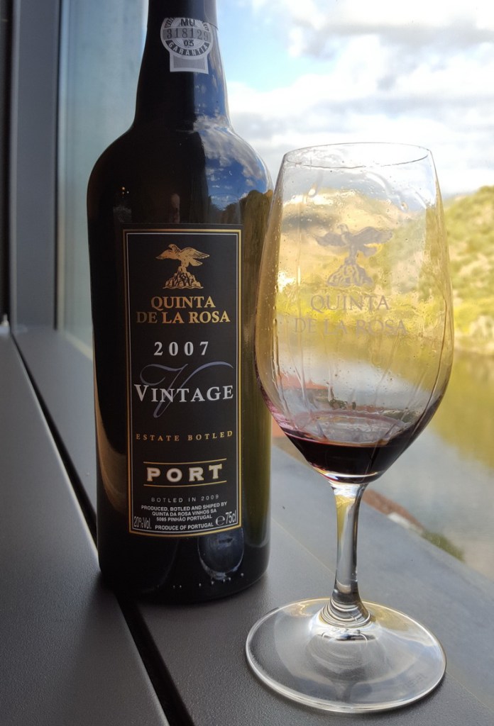 Na koniec dwie pozycje z kategorii vintage. Na początek Quinta de La Rosa Vintage 2007. Mieszanka touriga nacional, touriga franca, tinta barroca i tinta roriz. 2007 był wyjątkowym rokiem zarówno dla porto, jak i win wytrawnych. Doskonałe warunki meterologiczne pozwoliły na optymalne dojrzewanie winogron dając intensywne, skoncentrowane i dobrze zbilansowane wina z zaokrąglonymi i dojrzałymi taninami. Winogrona na wino były deptane w lagares do czterech dni z kontrolą temperatury. Zanim usunięto skórki zlano trochę wolnego soku (do zrobienia rose) przez co finalne porto otrzymało więcej koncentracji. Część wina trzymana były przez 18 miesięcy w drewnianym dębie przed zmieszaniem. Porto zostało finalnie zabutelkowane w czerwcu 2009 r. Wino ma niezwykła koncentrację koloru (ciemna wiśnia) i ładną złożoność aromatyczną. Znajdziemy tu dojrzałą wiśnię, jeżynę, czarną porzeczkę i zaskakującą nutę mięty. Na podniebieniu dużo treści, ciepłe dojrzałe taniny i zrównoważona kwasowość (pomimo cukru na poziomie 85 g/l). Jest ciekawie, ale dużo bardziej podoba mi się wino kolejne. Ocena: ***** (dobre i niezwykle interesujące – 4.5/6).