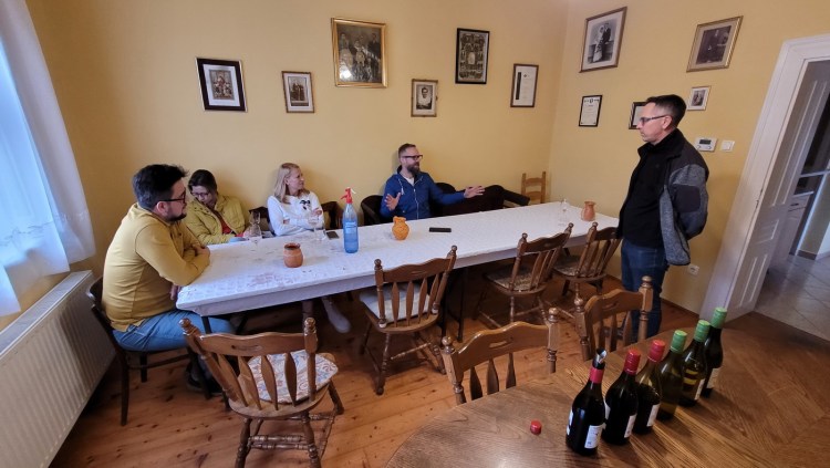 Jesteśmy w połowie listopada, trwa lekkie wyciszenie po kilkumiesięcznych zbiorach, Zoltán ma dla nas sporo czasu, co podkreśla, przyznając, że zjawiamy się w bardzo dobrym momencie. Najpierw krótka wizyta w piwnicy, kilka fantastycznych próbek z beczek, a następnie dłuuuuuga degustacja w starym, klimatycznym pokoju z rodzinnymi, czarno białymi fotografiami. Jest klimat, jest wino. I to ile!