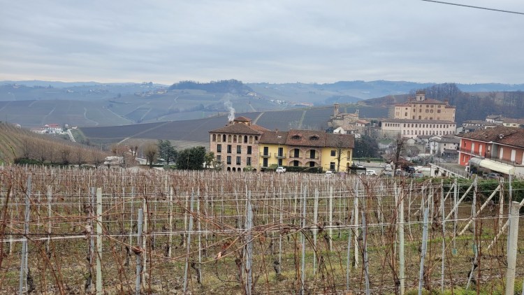 Do Barolo (winiarnia znajduje się dokładnie w tej słynnej miejscowości) pojechałem w mało instagramowej porze roku. W styczniu wszystko spowite jest we mgle albo co najwyżej w pochmurnej aurze, pędy winorośli odpoczywają jeszcze po jesiennej eksploatacji, z kominów wydobywa się leniwie dym – kwaśny klimat kojarzy się bardziej z Bristolem i Portishead, niż ze słoneczną Italią. Ale to nic, pędzę autem z Alby (gdzie się zatrzymałem) na spotkanie z nowym. Na swoiste wyjście ze strefy komfortu białych, pomarańczowych czy rzadziej czerwonych naturalesów – do świata salonowców – win poważnych, docenianych i – pardon za frazes – prestiżowych.