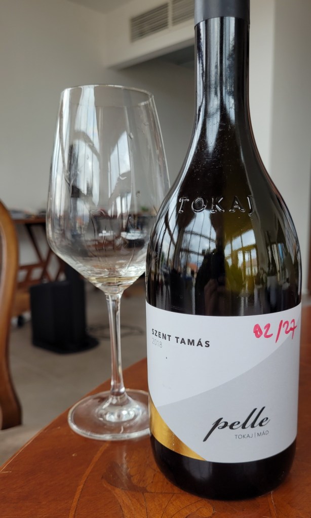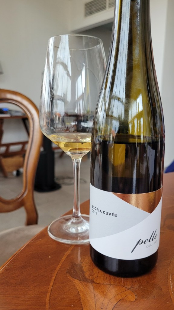 Zsofia Cuvee 2019 – późny zbiór, mieszanka furminta, hárslevelű i sárgamuskotály. Produkowane także z kiści winogron, które zawierają również zdrowe, pozbawione botrytis jagody. Cukier resztkowy 129 g/l. Nos z nutami miodu, lipy, moreli, migdałów i orzechów włoskich. W ustach dostajemy jeszcze jabłko i pigwę. W wyrazie lekkie, dobrze zbalansowane, z fajną kwasowością. Ocena: ***** (dobre i niezwykle interesujące – 4.5/6).