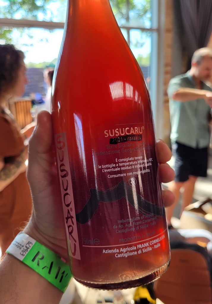Różowe Susucaro Rosato 2021 to mieszanka sycylijskich odmian (nerello mascalese i catarratto) pod rękę z muscat blanc à petits grains, które dają dość ciemne w oku „rose”, które swobodnie można traktować i w kategoriach bardzo lekkich czerwieni. Frank delikatnie je przefiltrował, o siarczynach zapomniał. Mega aromatyczny bukiet dostarcza nuty dojrzałych czerwonych owoców, cytrusów, mamy też aromatyczne zioła i lekką mineralność. Usta częstują przyjemną kwasowością, lekką strukturą, mieszanką cytrusów i czerwonych owoców oraz pulsującym napięciem. Żywe, długie, poważne i radosne zarazem, ale świeższy rocznik 2022 jest bliżej ideału.Ocena: ***** (bardzo dobre – 5/6).