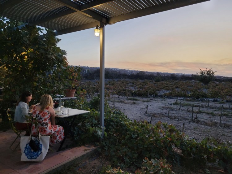 Tego jesiennego wieczora z mym towarzyszem winnej przygody mamy już za sobą spotkania przy winie w Hatzidakis Winery, Gavalas i OENO P, ale jeszcze nam mało, a fabryka wciąż daje, więc w rytmie zachodzącego słońca wpadamy na ostatnią paróweczkę Hrabiego Barry Kenta – do prawdziwej legendy Santorini. Nie żartuję, większej tutaj nie znajdziecie.