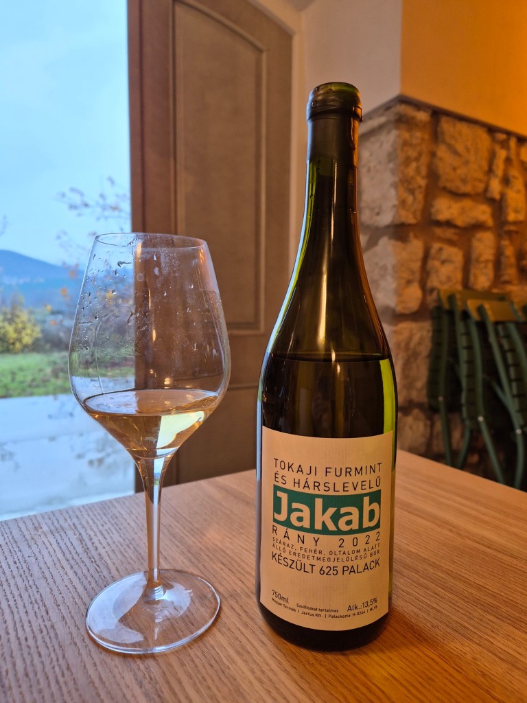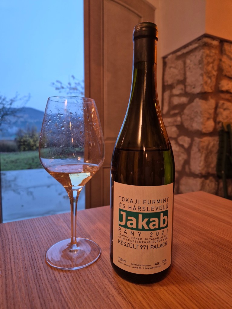 Jakab Rány 2022 to blend furminta (70%) i hárslevelű (30 %). Wino spędziło 10 miesięcy w używanej francuskiej beczce. Nos charakteryzują nuty kwaśnego jabłka, pigwy, skórki cytrynowej. Usta ładnie już rozwinięte, dobrze zbudowane, z akcentem jesiennych owoców (jabłko, gruszka, pigwa) i fajną taniną. Do pionu ustawia rasowa kwasowość i wyraźny mineralny (mokry kamień) charakter. Ocena: ***** (dobre i niezwykle interesujące – 4.5/6).