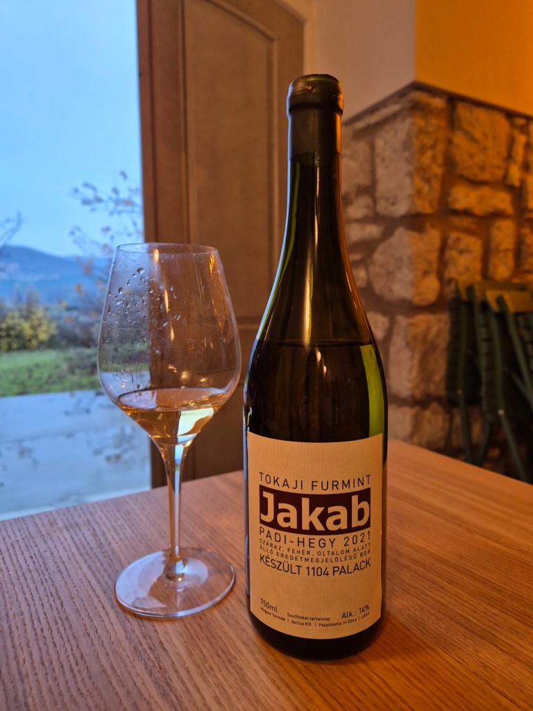 Mojego wytrawnego faworyta degustacji, czyli Jakab Rány 2021 (70% furminta, 30 % hárslevelű) wyróżnia energetyczna, najwyższa kwasowość (8.3 g) w całej stawce. W zapachu grejpfrut, cytryna, skórka cytryny, kwaśne zielone jabłko. Usta z wyraźniej owocowym posmakiem (różowy grejpfrut, jabłko), nutą przypraw spod wezwania werbeny i mineralnym, słonym finiszem. Duża osobowość. Ocena: ***** (bardzo dobre – 5/6).